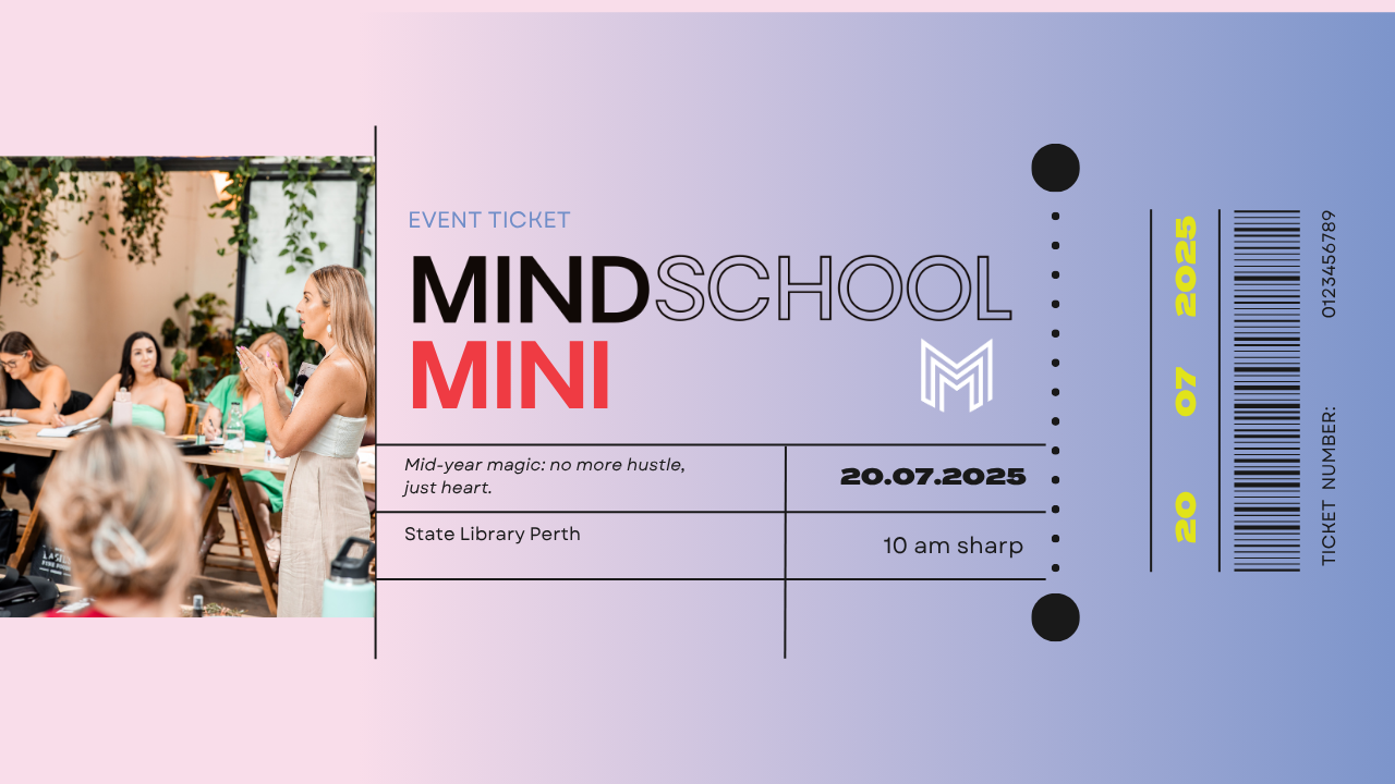 This is your invitation to The Mind School Miniâa full-day immersive experience designed to get you out of your own way, back into alignment, and excited about your life again.